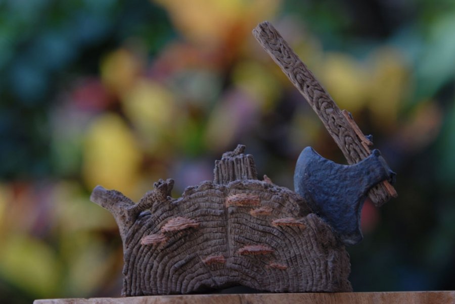 了。所以運用陶土的質地,用手間刻劃化出肌理,每道溝縫象徵時間的深度;這是傳遞對時間的一種意念。大地泥土孕育了萬物生命,「土」在我的手中將夢化成一 個形體。